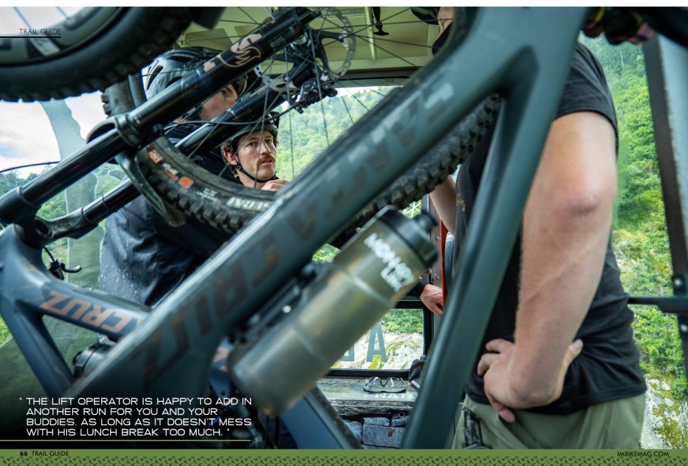Now when I say gondola, don’t let your mind make you believe these are huge 50-90 person structures you see in the ski resorts. Nope. These gondolas are tiny and not built for taking mountain bikes either. Without bikes, you can squeeze in 8-10 individuals plus their groceries, but when insisting on taking your bike with you, it goes down to 6.