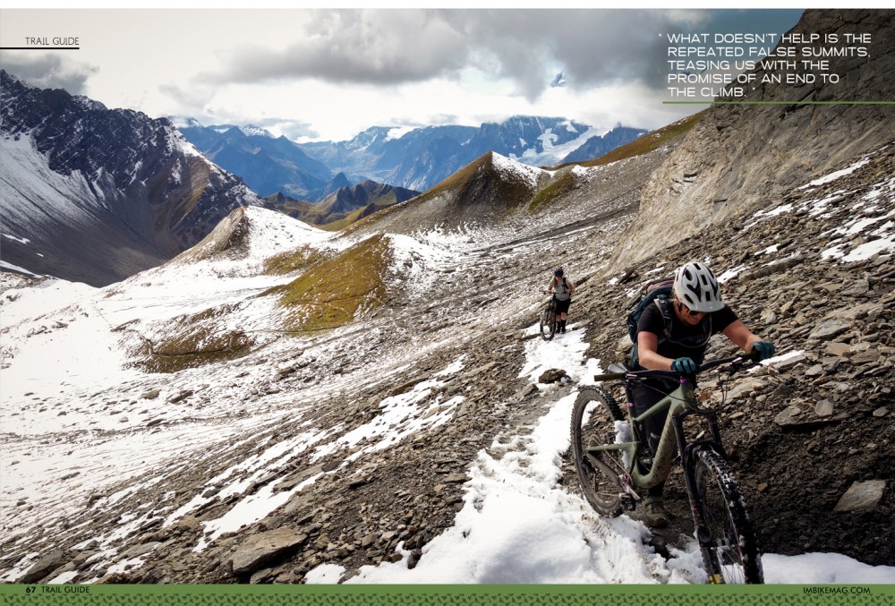 Fancy giving the ride a go? From wherever you’ve started, head along the Val Ferret valley floor road to Arnouva then take a right and gain 250m in a very short period of time. The trail then traverses back round towards the Bonatti refuge. Shortly before the refuge, head up into Vallone di Malatra, and carry on (often literally) up to the Col Malatra at 2925m.
