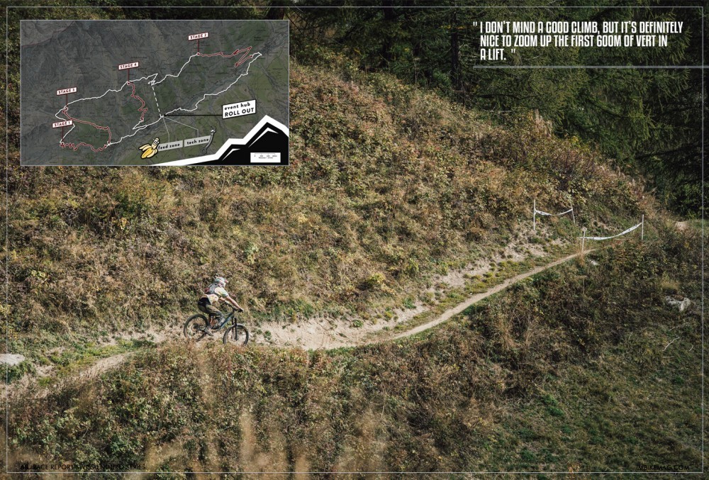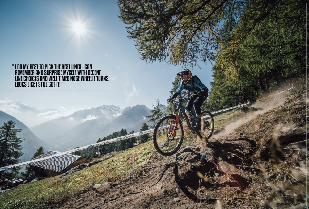 While checking the trail from the start gate, I see the reigning Swiss champ Gusti Wildhaber roll up. Perfect opportunity for me to scoop some lines! As he effortlessly whizzes past, he does point me in the right direction on how to deal with the first rock slab right hander. He quickly disappears out of sight though, so for the rest of the stage I’m on my own.