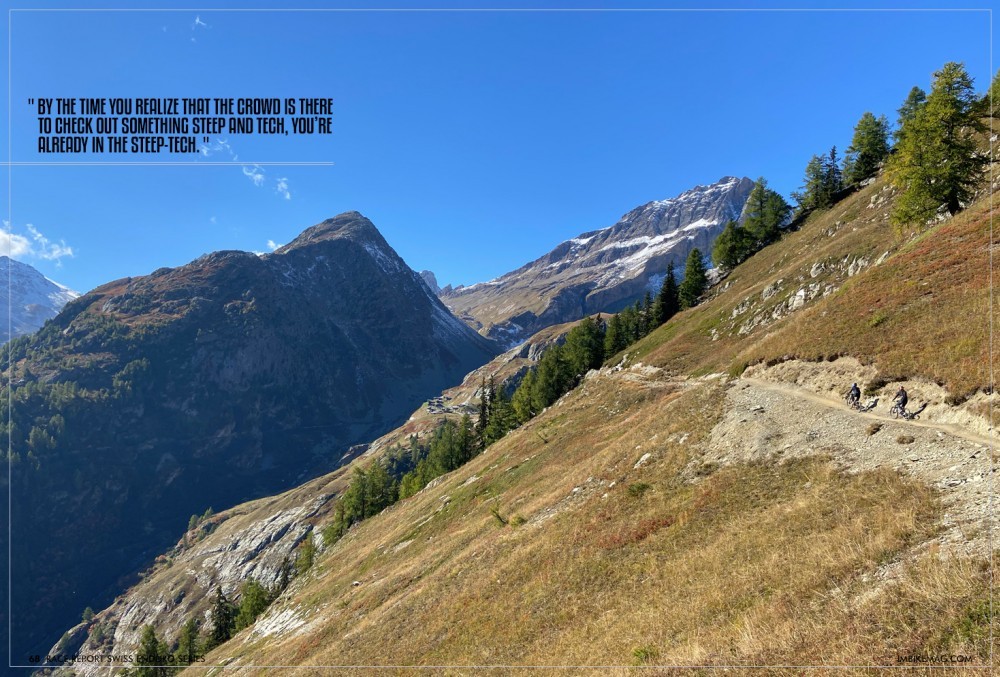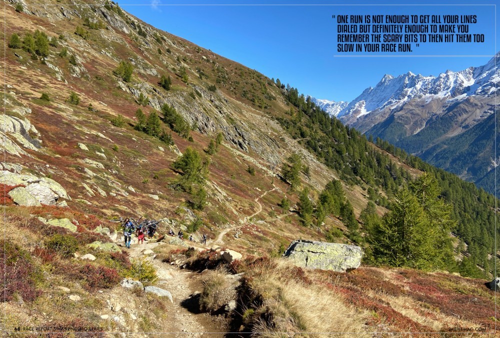 Reaching stage 2 was a lot easier and only involved a short asphalt climb before dropping in. When catching my breath at the top I run into Matt, a Canadian who decided to spend some time in Europe and Alistair, a Valais local with Scottish roots. We chat away a bit about the differences of riding on this side of the globe, and how weird it is to talk to the other riders. Not because they’re not friendly, but more because this country has three official languages. You never know who speaks what!