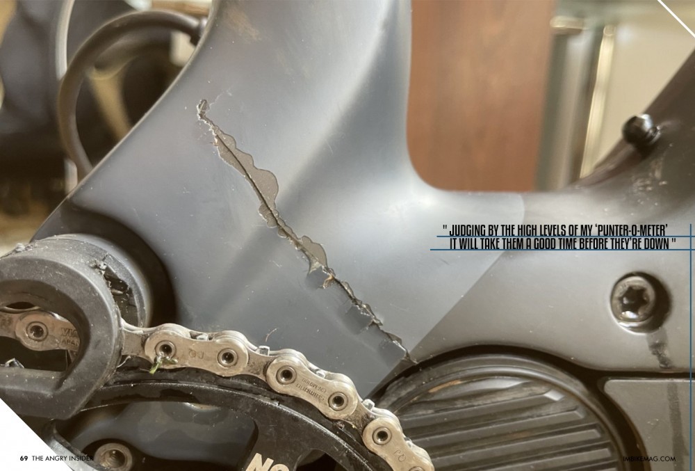 Imagine an inbox filled with images of completely mangled front triangles, bent front wheels and forks and a note claiming the dude (m/f) definitely did not smash into a tree / rock or other immovable object. Just riding along to the trailhead and the frame just folded itself like a yogi. Sure buddy.
