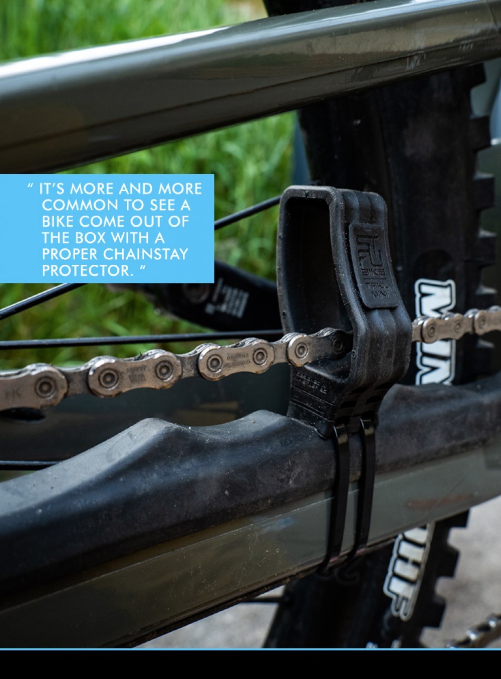 Although the Shimano Shadow RD+ system stopped a lot of the chain slap, most noises are chain related. Good news is the bike manufacturers have paid attention the past few years and it’s more and more common to see a bike come out of the box with a proper chainstay protector. Bad news is, they don’t always cover all the spots where the chain hits so this is where a product like Ridewraps chainstay armour comes in handy.