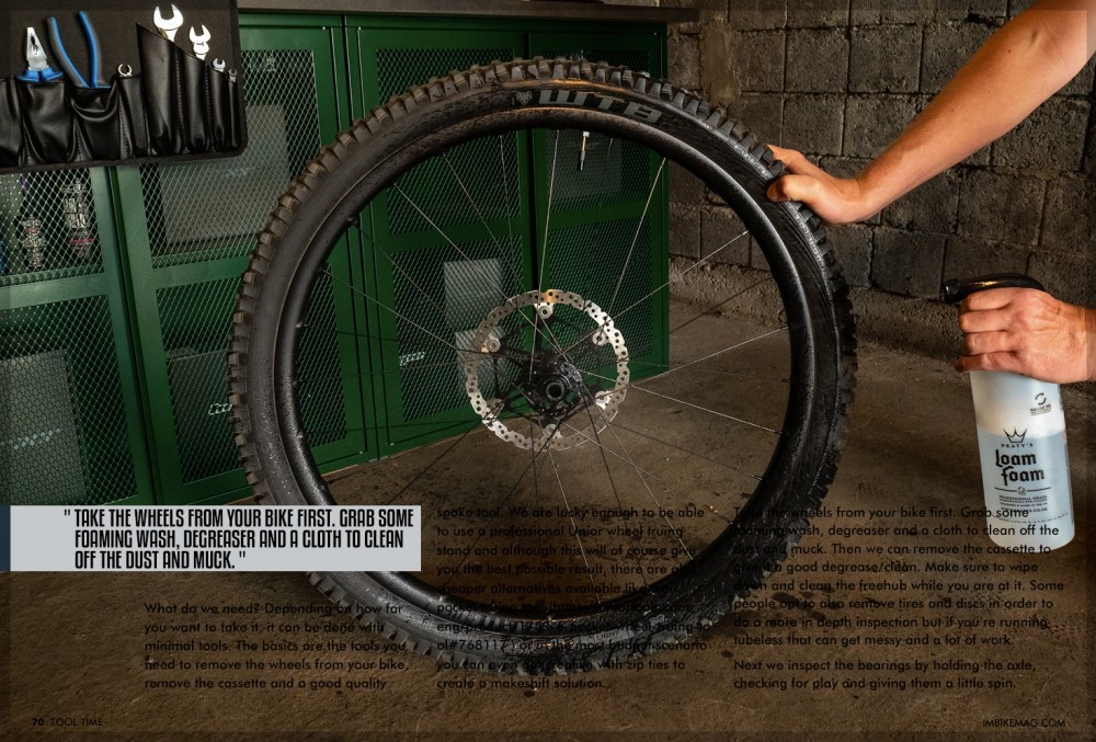 Take the wheels from your bike first. Grab some foaming wash, degreaser and a cloth to clean off the dust and muck. Then we can remove the cassette to give it a good degrease/ clean. Make sure to wipe down and clean the freehub while you are at it. Some people opt to also remove tires and discs in order to do a more in depth inspection but if you’re running tubeless that can get messy and a lot of work.