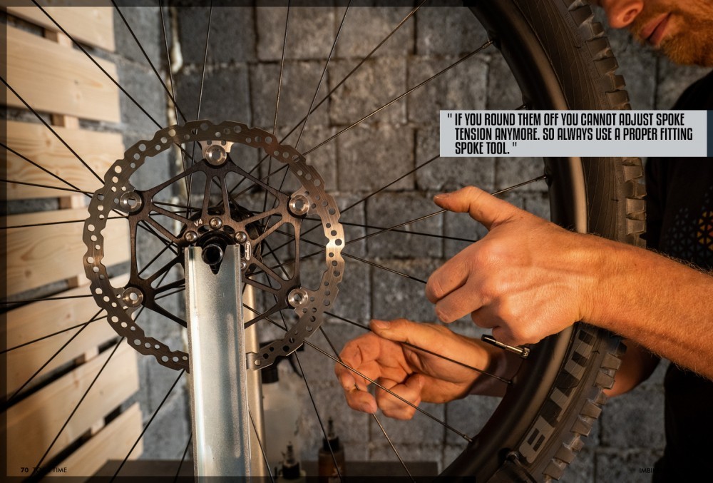 Get a feeling in your fingers on the spoke tension and how tight you twist the nipple. It should never be forced. Sometimes, nipples can get stuck and you’d need to soak them in a drop of oil before they move. Sometimes they refuse to budge at all and it’s time to take it to the shop or start saving up for some new ones.