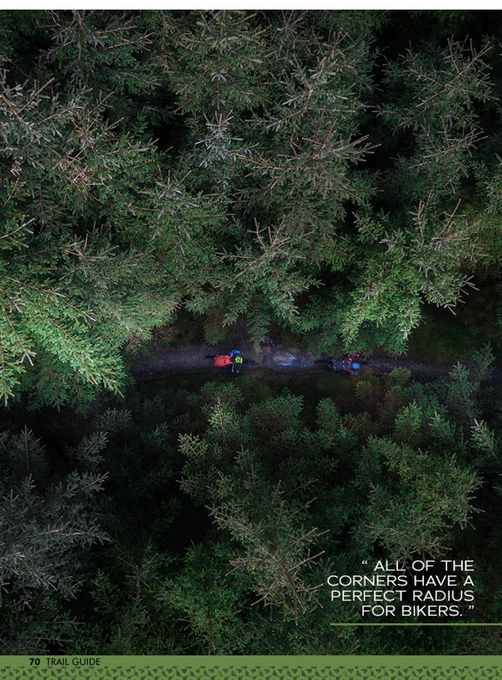 Counting an average of 13 rainy days even in the middle of summer, the forests in Wales are lush and bright green. Tall trees and moss covered landscapes made me convinced that the elves and gnomes are not far away. The trail is a dream for any 140mm bike out there. Rocky enough to keep it interesting but plenty of flow to keep you in the zone.