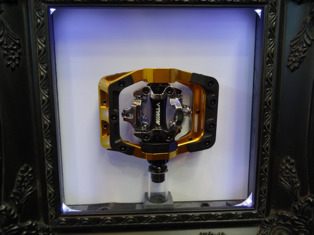 The major news from DMR is the development of their pedal range into the world of clipless pedals. Yes. You heard it right, pedals with cleats for those who want to race fast and keep their feet in place. No tail whips with these bad boys. The V-Twin features a Shimano compatible unit housed in a typically robust cage to keep it solid and dependable. What makes the V-Twin special is the huge range of tuning available through the shims and plastic plates which can be bolted onto the cage to adjust levels of contact and grip. Through pins are also available to create a totally tunable pedal. Having been stood on by numerous world cup riders yet to be named, the pedal is set to be a great option for gravity racers. Weight comes in at 480g, but with a Mag body and cage, coupled with a Ti axle this weight will drop significantly to make a super competitive lightweight option. This superlight option is still in the pipeline for next year, but watch this space.