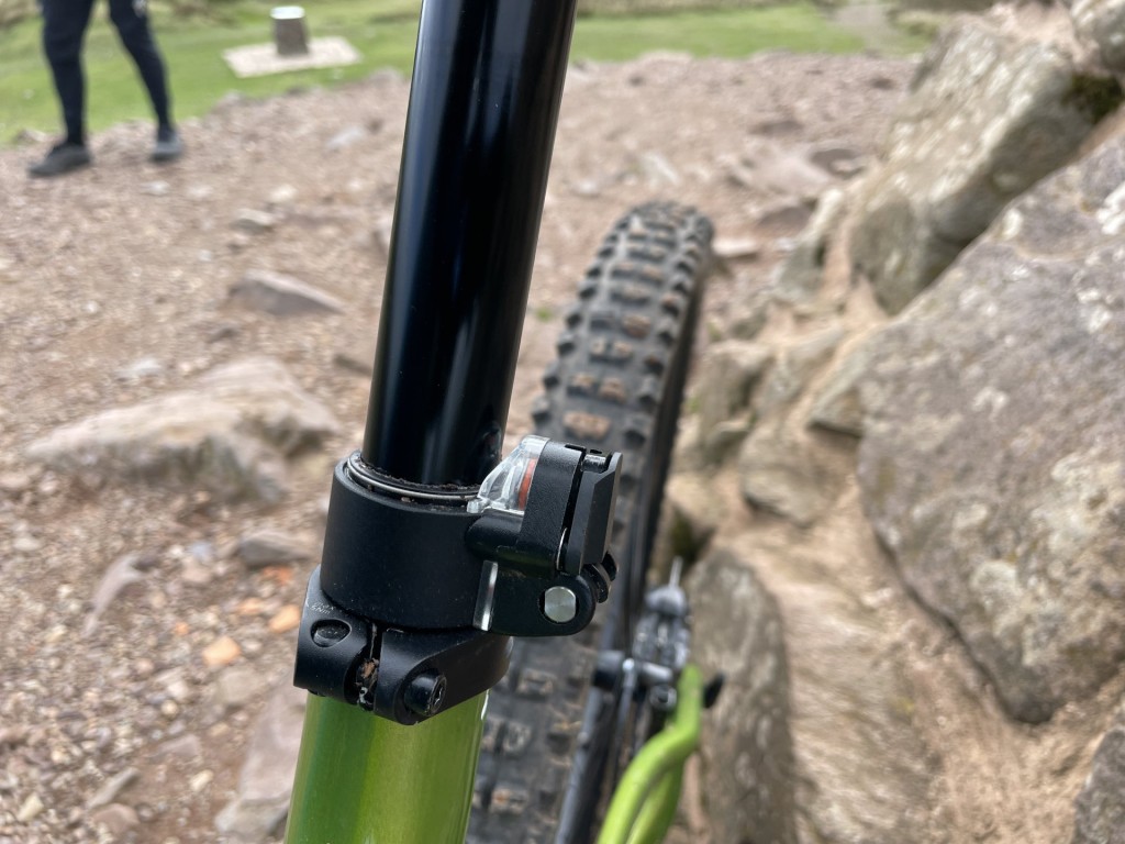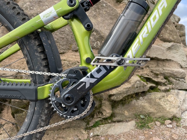 The ONE-SIXTY now boasts 170mm of travel up front with 162mm in the rear in 29″ set-up; if you opt for the mullet option, then the travel at the front increases slightly to 171mm. The bike features a flip chip in the rocker which allows you to switch the rear wheel size; it DOES NOT, however, change the geometry, so while you can get a different ride characteristic, you maintain the bike’s unique geometry. That geometry is worth a mention, too; a super steep seat tube angle of 79 degrees is coupled with a 64-degree head angle. The seat tube is straight, and this allows the use of the revolutionary Merida Team TR Dropper post, which delivers a huge 230mm of travel. This travel can be tuned using an Allen key, so you can set it to any amount of travel you desire down to a minuscule 30mm. Removing the need to push the post up and down in the seat tube. This allows Merida to keep the seat post super short across all the sizes, allowing larger riders to get decent clearance and shorter riders to ride longer bikes while still having a good standover height.