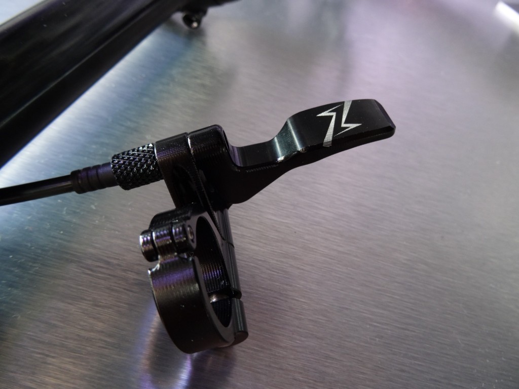 The Black Ace carbon bar gets an increase length from previous version to 785mm with 15 and 30mm rise. The magic sweep numbers are 5.5 up and 8 back to give a great feeling set of bars with a clamp size diameter of 31.8. The UpDown post now sees a internal routed version, still actuated with the same left hand thumb shifter. It has a fully removable cartridge for servicing and the stanchion and seat clamp are forged as one piece for stiffness and zero creaking. The drop is standard 125mm but give them a year and I reckon there will be a 150mm for the tall folks. The other news comes in the form of a 27.2 post in 100mm drop for the XC or cyclocross who wants to get a bit more fun from their training grind.