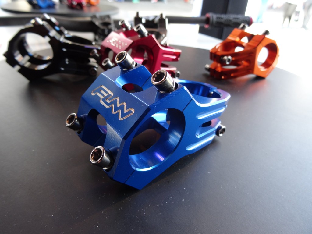 The Funnduro is a low stack height stem coming in both 31.8 and 35mm bar clamp, 35/45/60mm length and a range of gloss colours. As the name would suggest, probably aimed at the enduro market. The Strippa stem is a more stiff and chunky option with a slight weight penalty over the Funnduro, available in both clamp sizes and 35 and 45mm lengths.