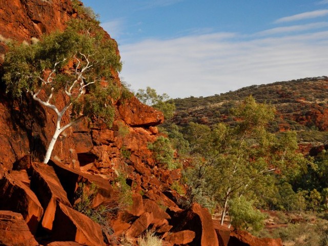 The Finke River, or Larapinta to the local Arrernte people, is the world’s oldest river (or thereabouts); parts of the course near the source in the West MacDonnell Ranges, are older than the range itself (approximately 320 million years old). It was there when the ranges were pushed up, before the dinosaurs, when the Earth’s land masses were united to form the Pangea super-continent.