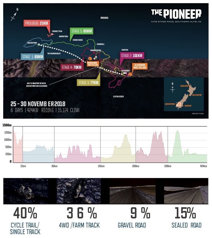 In terms of tempting mountain bikers to visit, New Zealand really has its bases covered. From the single track mecca of Rotorua (not to mention Nelson, Queenstown, Wellington, Christchurch…) to the great rides dotted all over the place; from the Tour Aotearoa bike-packing route from top to bottom, to Crankworx – what more could you want?  Well, the mountain bikers’ smorgasbord at the bottom of the globe now includes a cross country stage race to rival the best in the world. The Pioneer takes place in the magnificent Southern Alps and covers 424km and a massive 15,124m of climbing over 6 days.