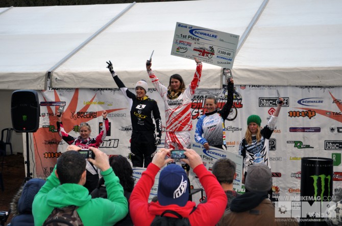 In the women’s race all eyes were firmly on Rachel Atherton and Manon Carpenter. With Rachel having missed out on the opening round of the World Cup in Pietermaritzburg this was their first race together in 2012. Rachel’s brother Gee may have missed out on racing due to his broken tibia, but he was on his crutches by the side of the track to give Rachel his support. But it was Manon Carpenter who took her first BDS victory, beating Rachel by just over half a second.