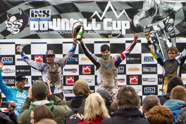 But he too couldn’t beat MacDonald’s time and missed the podium. The last one to finish was Cunningham, and it was pretty clear when he hit the final berms on the muddy meadow that he is going for the win. He finished in 3:02.056 min with more than 3 seconds ahead of MacDonald and took the win, so in the end it was Cunnigham first, MacDonald second, Buchanan third, followed by Wallner and Pekoll. The MS Mondraker Team managed to take all three spots in the overall rankings, with MacDonald first, Damien Spagnolo second and Pekoll with only one point difference at three.