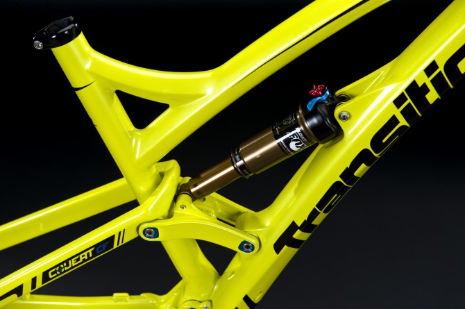Working in conjunction with the B.A.L.L.S. suspension system, the 2013 Carbon Covert features a longer 8.5” x 2.5” custom tuned Fox CTD Adjust rear shock. The longer shock helps contribute to improved suspension performance and easier shock setup for riders of any size. The rear travel has been increased from 150mm to 160mm further expanding the performance in gnarly terrain. For riders looking for ultimate downhill performance, an optional Fox RC4 coil shock is available as well. The B.A.L.L.S. suspension system uses a higher main pivot placement for improved pedaling performance with modern 2×10 and 1×10 drivetrain setups. An all new hardware system, with single allen key tightening, has been developed to keep the pivots tight. While the front triangle features full internal cable routing, including the Reverb Stealth routing for clean looks and integrated performance.