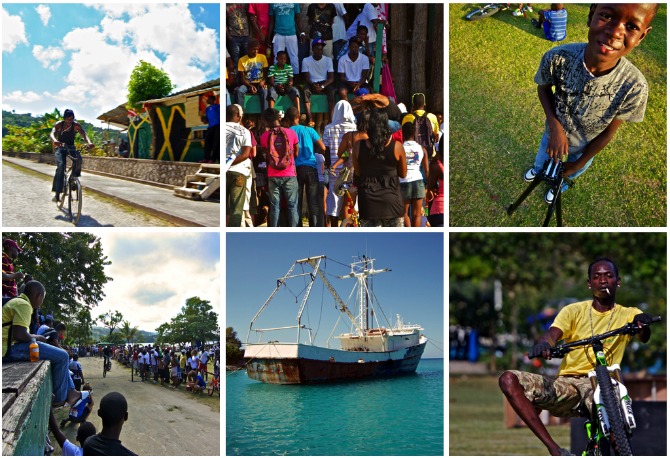 The Bike Bash. We rode our bikes out of Ocho Rios and over to James Bond beach, a small-enclosed park on a little finger of land completely surrounded by crystal clear blue water. Here on the green grass spit a running track would host numerous bike events: a criterium, the Rambo Olympics, the bunny hop competition and a skills relay course.