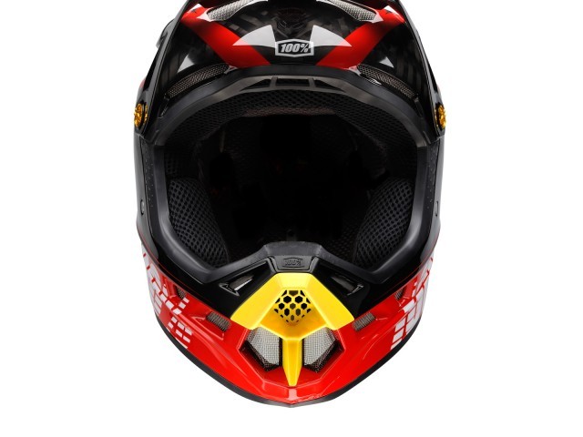 100% Have just released the information about the new Aircraft Helmet, we were lucky enough to see this at Eurobike this year and it is looking rather spectacular! This isn’t just another off the shelf helmet from Asia, the Aircraft has been designed from the ground up with safety at a premium. It utilises a Carbon/Kevlar composite shell and is very light, sadly we didn’t have our scales with us and there is no word from the brand on the exact weight, as soon as we get our hands on one we’ll be sticking it on the scales. With 25 vents the name Aircraft is a clue as to one of the key features of this lid, 100% are claiming it as the most ventilated DH helmet on the market.