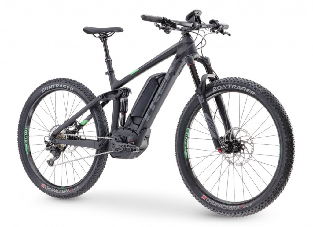 Powerfly FS (full suspension) is modeled after the proven Fuel EX platform and equipped with 130mm of front and rear suspension. Powerfly builds on Trek’s legacy of MTB expertise with its proven ABP and EVO Link suspension design. The new full suspension Powerfly also features the latest in Trek’s mountain bike frame technology, including Boost hub spacing and the new Straight Shot down tube with Knock Block frame defense for true mountain bike performance.