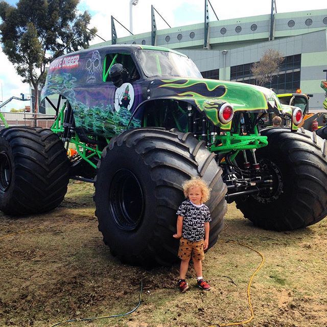 Bam, following in his dad’s love for all things Green and Purple (If you look at Sam’s Leatt helmet earlier this year it was custom painted in black, green and purple.), had discovered the truck and was quickly obsessed with it and his model of Grave Digger. Sam had recently taken Bam to meet the real life truck at a Monster Truck meet in his native city of Perth.