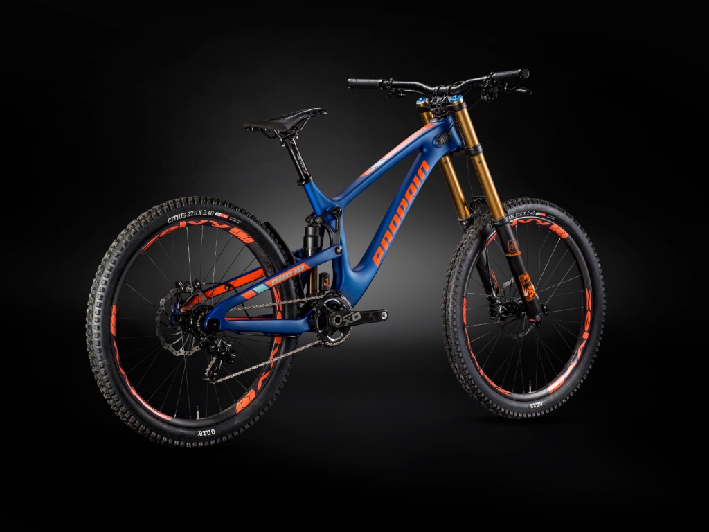 It’s blue, it’s beautiful, it’s the new carbon Rage DH chopper from Propain and by the beard of Zeuss it looks good!