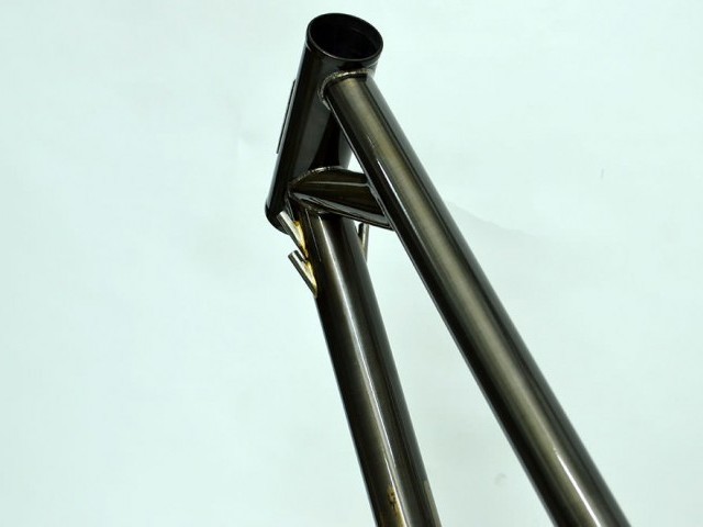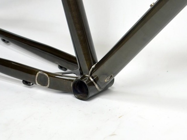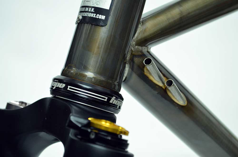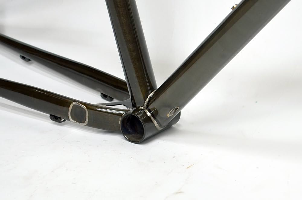 The cables are routed through the down tube, within thin stainless steel guide tubes; these tubes ensure that the frame stays sealed, and installing cables is as simple as just pushing the cable through until it pops out the other end.