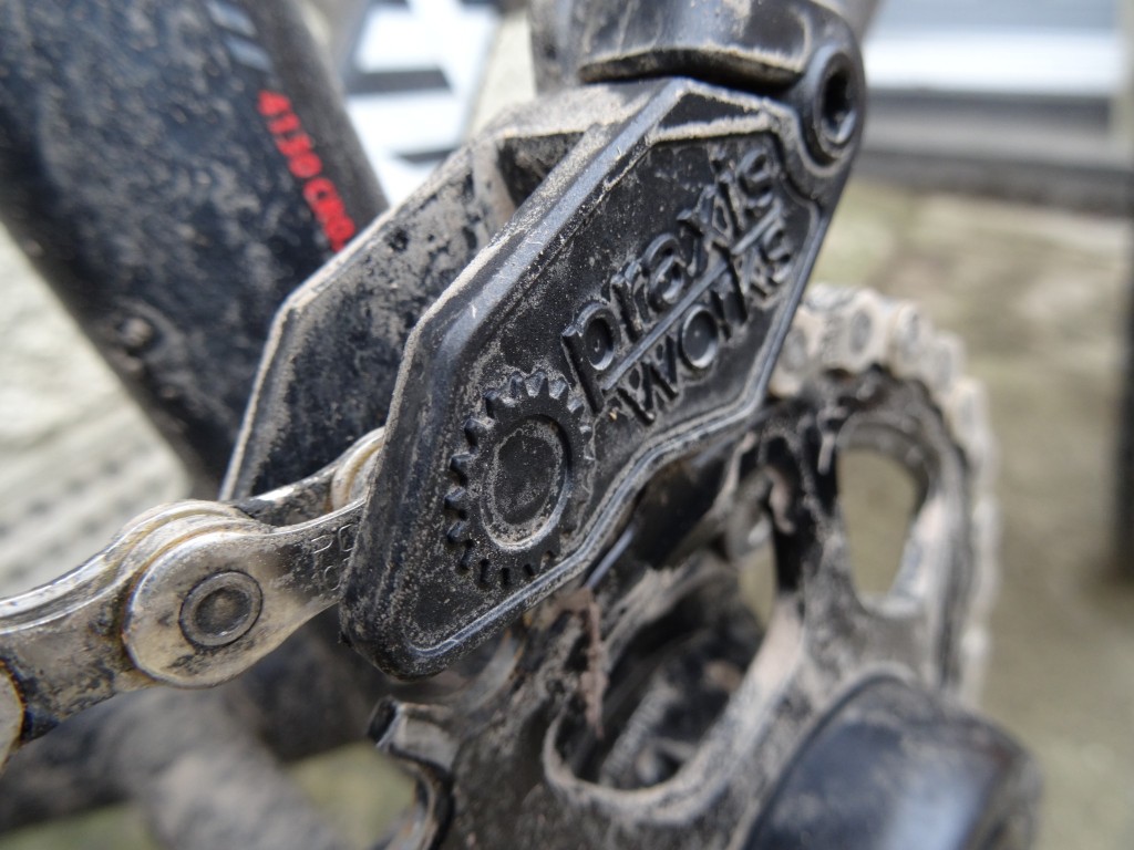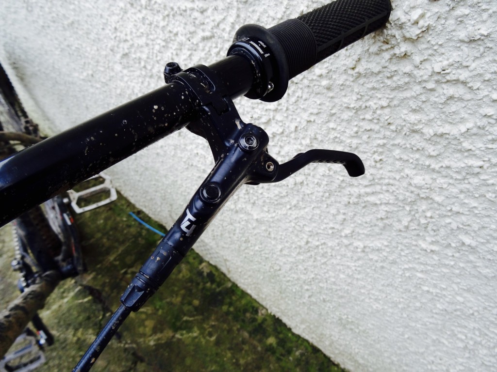 The Praxis works cassette and chain guide has done sterling work, and offer a great way to get a wider range 10-speed cassette, in this case, an 11 to 40t run with a Zee rear mech. The chainguide has done what a good chainguide does and given no dropped chains for the duration, whilst being small and light. The Deathgrips from DMR have been excellent, offering a comfortable, not too thick feel, and a bit of dirt jump flange styling. The DMR stem bars and cranks again have been great, but perhaps still look very industrial, on a bike which now has some svelte styling and swoops.