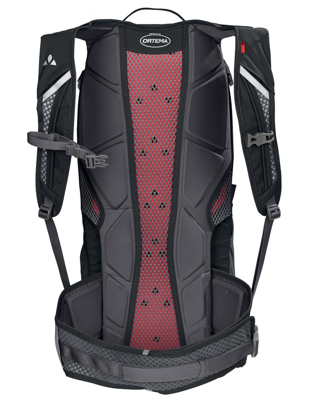 In conjunction with VAUDE, Ortema has developed a protector that is integrated into the backpack. The pack hugs closely to your back to protect your spine and has an adjustable hip-belt that lets you fine-tune the pack to fit your body size. The protector consists of several layers of breathable, viscoelastic foam for maximum protection in a crash. It is multi-impact and therefore returns to its initial shape after an impact and does not need to be replaced. The shoulder straps and the wide hip-belt of this super lightweight backpack are made of air permeable, flexible material. The backpack can be worn close to your body and remains secure on rough and uneven terrain.