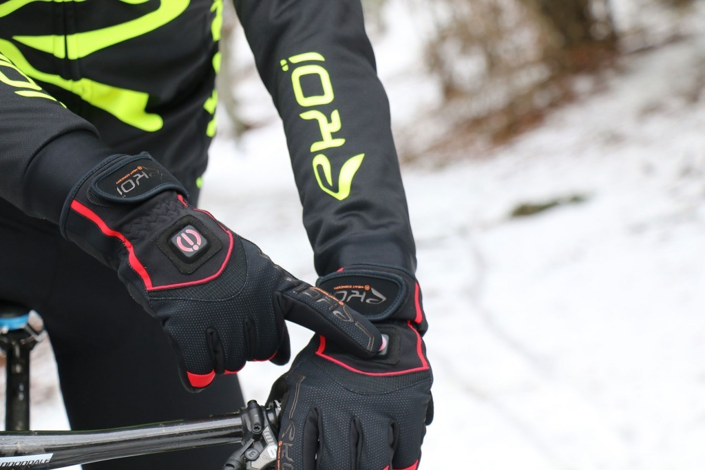 Equipped with the waterproof and breathable membrane Hipora, the Ekoi Heat Concept gloves are first of all cycling gloves. Made of neoprene, they feature a reinforced palm with anti-slip silicone inserts and they are tight around the wrist in order to prevent the passage of cold air. Their secret lies in the network of filaments that allows for an even distribution of the heat produced by two rechargeable batteries installed on the back of the wrist.