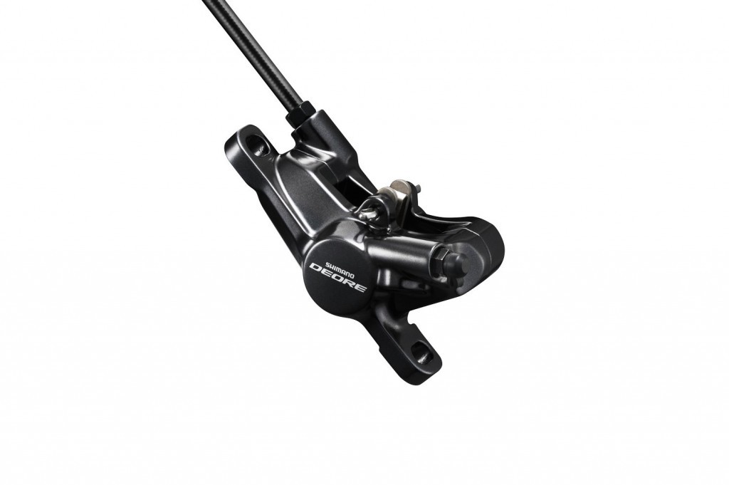 At a similar grade to the new Deore group comes a new 2×11 two-piece 36-26T front crankset (FC-MT600) with abrasion-resisting teeth and Dyna-Sys shifting in Boost and Standard dimensions, as well as a new closer step 2×10 36-26T front crankset (FC-MT500). Combined with the FC-MT500 crankset is a hydraulic disc brake set (BR-MT500) offering a non-series version of the Deore BR-M6000 hydraulic brakes. New pedals (PD- ED500) too offer a Deore-grade double-sided light action SPD model.