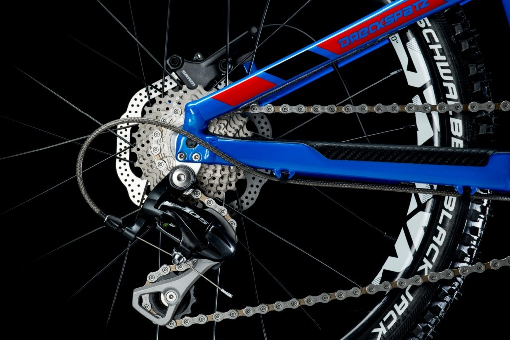 For all those kids who spend their riding time in a bike park or already try themselves out in rather technical terrain the full suspension model Frechdax is probably the best option. For all others, who just need a light, strong and reliable kids bike to ride the singletrails next door or hit the local pump track, the new Dreckspatz is the perfect choice. Being super light and very pedal efficient the Dreckspatz hardtail is easy to handle and a real skill booster for the kids.