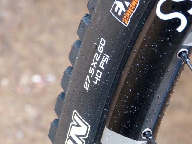 What is definitely new, are the tyre dimensions, and the test bikes were all sporting the latest and greatest tyre size: 2.6 inches. My steed for the day was running a 2.6 Minion up front and a 2.6 Recon out back, but unless you spot the sidewall numbers, the Minion looks very close to the 2.5 WT we’ve seen a lot recently. Unsurprising given the 0.1-inch difference. Maxxis now offer the Minion in almost continuous one tenth of an inch increments from 2.3 to 2.8.