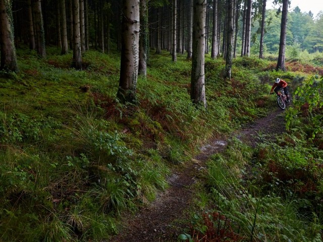 Finding the rootiest and steepest ground I could find, in particularly wet and frictionless conditions gave a good test of the suspension sensitivity and handling characteristics. The light tune on the shock works hard to find grip, and small bump compliance is super supple. I found it probably too light in the middle, but this was the same on the Switchblade and needed to run a firmer setting to get the most out of it. More time on board will tell, and as usual for Pivot time spent setting up the suspension is well spent to maximise the awesome potential of the DW link.