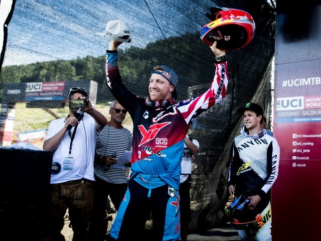 After qualifying fastest on the super quick Leogang track, Aaron Gwin laid down a brilliant final run here today to take his first World Cup win of the season, and his 3rd for The YT Mob. Scoring the maximum 250 points from this weekend sees Aaron move all the way up to 2nd place in the overall series, just 38 points behind current leader Greg Minnaar.