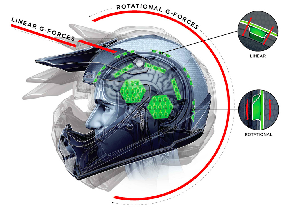 Traditional EPS liners do not protect against brain damage at low speeds (2 – 4m/s) or brain rotation at any speed (although Composite Fusion lowers impact forces by virtue of helmet size and weight reduction – a shorter lever on your head).