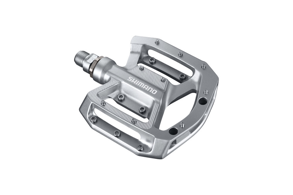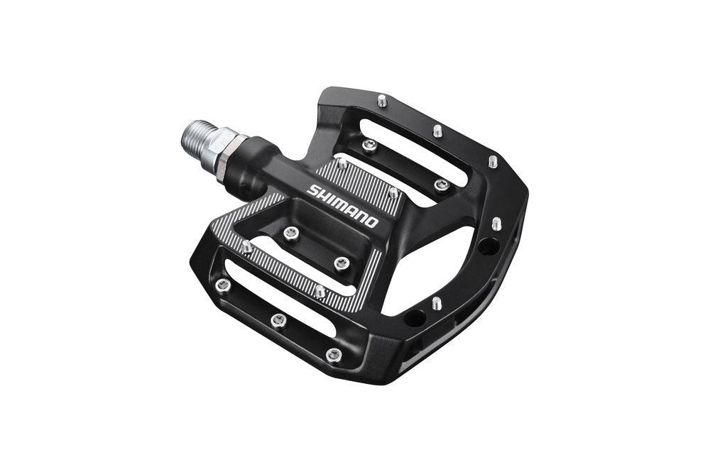 Finally, the PD-GR500 builds on the strong reputation of its predecessor (PD-MX80) as a Shimano- branded durable flat pedal for entry-level Trail and All-Mountain riding. The PD-GR500 features height- adjustable pins and low-maintenance sealed cartridge bearing chromoly axles, available in black or silver options at a weight of 533g.