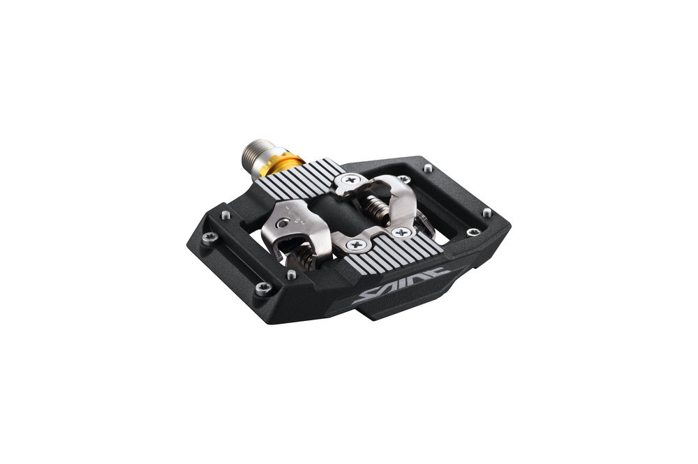 Shimano’s revised Gravity pedals feature one SAINT-level SPD option, three flat pedal options at Saint and Deore XT-levels, and a non-series option, all designed to fit perfectly and offer optimum pedaling connection with Shimano’s Gravity and All-Mountain shoes.