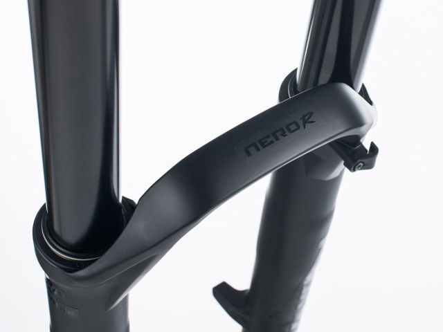 Downhill forks are constantly exposed to an extraordinary amount of stress, especially in the thru-axle area: Nero fork is fitted with a new locking system called Firm. When designing it, the aim was to make wheel changes quick and easy, getting rid of multiple screws on the lowers, and at the same time offering the maximum stiffness. The Firm system centres on a 20mm thru-axle that is secured by a ‘counter-knob’ that is tightened after the axle is installed and prevents the axle from unscrewing, providing maximum security and minimum weight.