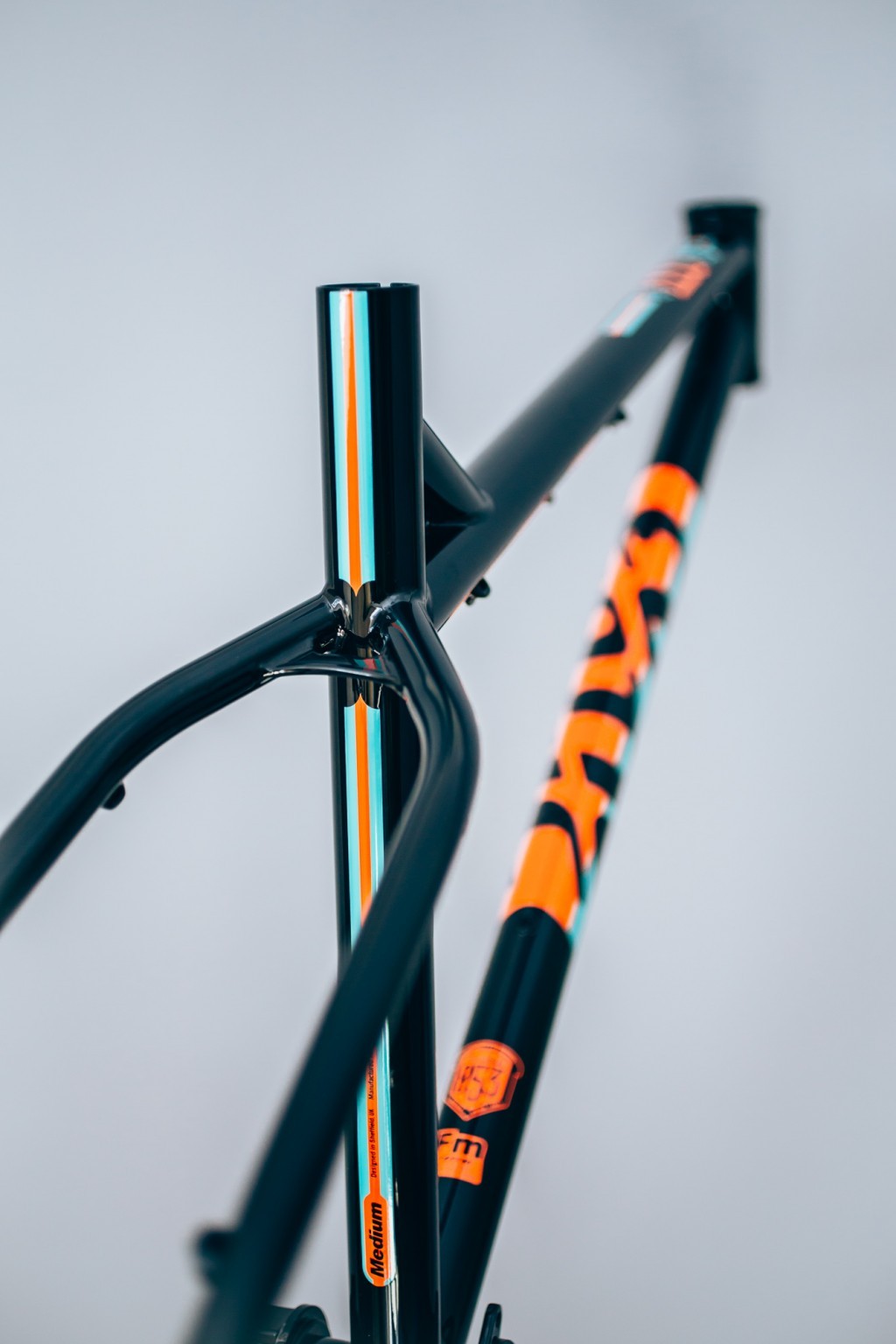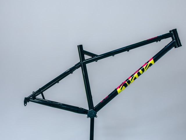 The frame is based around a Reynolds 853 down tube, which allows us to keep massive strength where is matters most, whilst keeping weight down. The rest of the frame is our own FM Heat Treated double butted cromoly steel, which help keep strength and value high throughout the rest of the frame. There are no corners cut: All the usual Cotic features of Ovalform top tube, oversized plug welded seat tube, wishbone stays, Syntace thru axle dropouts, stealth seatpost routing and taper steerer compatible head tube are all present and correct.