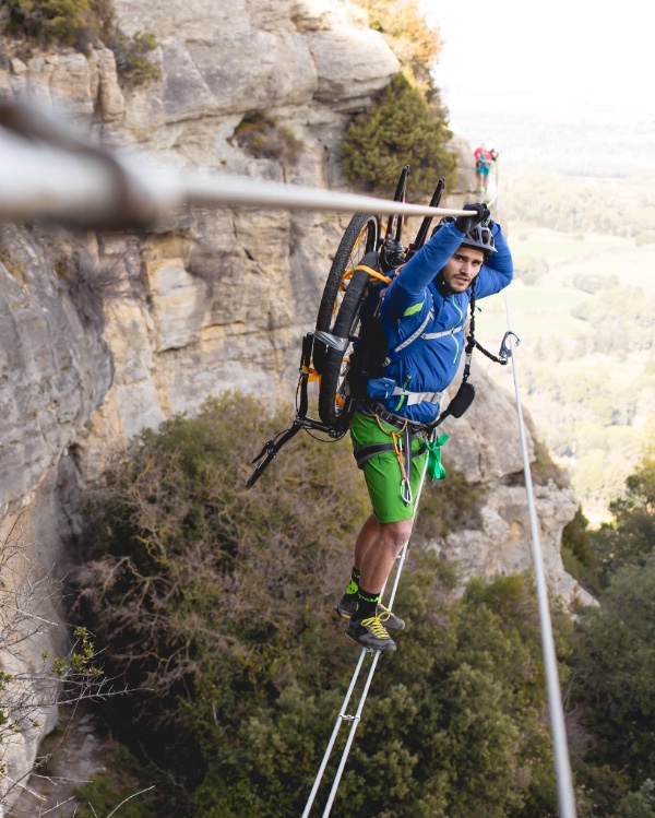 So you think you’ve seen it all? Turns out you can have a via ferrata adventure on a mountain bike! Check out the high quality bike packs strapped to their backs and the fun vibe going on. Plenty of dabs and sweaty palms going on here!