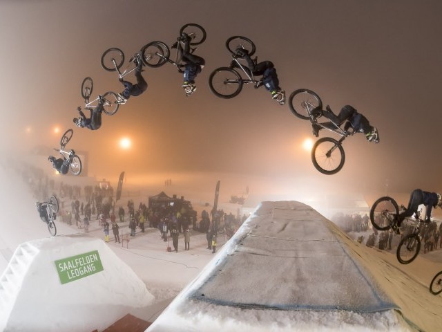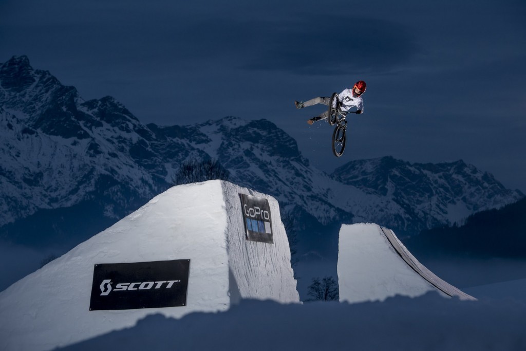 Once again the FMB World Tour season started in front of the backdrop of Leogang’s ‘Steinberge’ with the only mountain bike slopestyle contest on snow: White Style. Training and qualification were held in perfect bluebird condition, but during the final runs fog moved in. As a result of decreasing visibility,the event eventually had to be canceled after the quarterfinals.