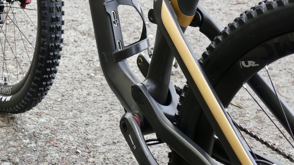 The sharp new frame benefits from internal cable routing and a super low standover height thanks to that new shock mount, and there’s even a removable blanking plate above the BB for mounting a front derailleur! Remember those?