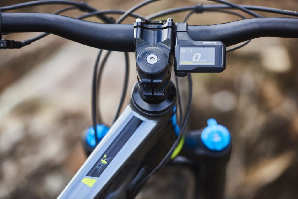 Drive system comes courtesy of Shimano, in the shape of the E8000 STEPS motor. STEPS is the best drive units on the market, and its three power modes – Eco, Trail and Boost – give you power when you need it, but preserve battery life when you don’t. Charging is 5hrs for 0-100%, or up to 80% in just 2.5hrs, and you look forward to up to 100km of supported riding on a single charge.