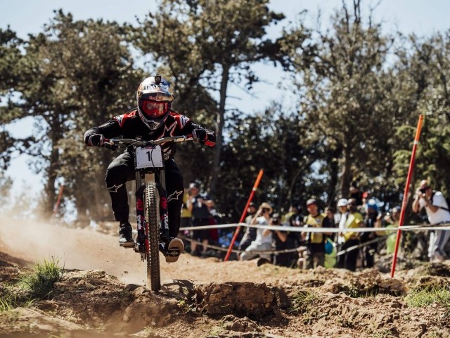 In the men’s race, the drama continued. Brook Macdonald’s wild style saw him pushing to the very limits of adhesion and tragically for him, he pushed past them. He crashed at the end of the high speed drop section and after being attended to by the trackside medical crew, rolled down to commiserate with his fans. American Dakotah Norton finished the day a career best fifth just behind a resurgent Sam Blenkinsop who many had seen as one of the pre-race danger men.