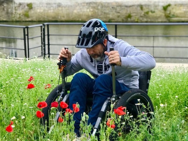 Martyn Ashton, former British and World Champion mountain bike trials rider, who was paralysed following an accident in 2013, during a bike trials demo at the British Moto GP has become the proud owner of a Mountain Trike all terrain wheelchair.