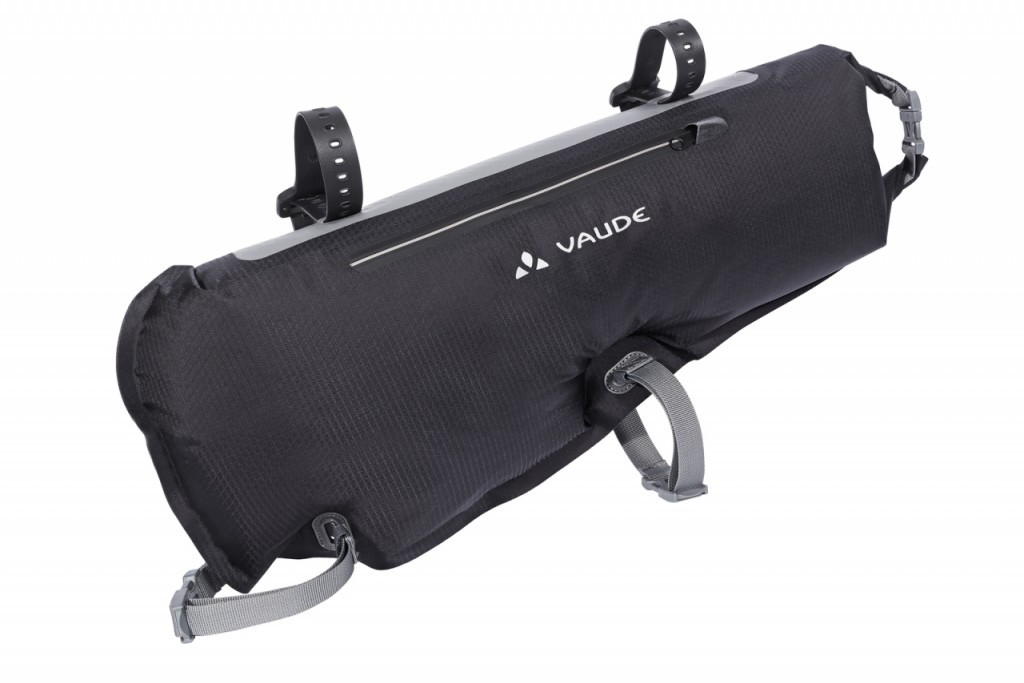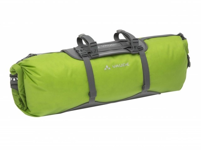 Vaude’s three new bike bags, aptly named Trailfront, Trailsaddle and Trailframe, all feature roll-down closures that are easy to use and roll up tight. Made from PVC-free tarpaulin with welded seams, they seal out water effectively and the handlebar bag and the saddlebag are designed to carry the largest part of your load. A central mounting system keeps you agile and your bike under control even on rough terrain. Both bags are designed so that the mounting system remains on the bike, allowing the bags to be easily and quickly attached or detached. Together the three bags offer 39 liters of hauling capacity. The Trailfront handlebar bag also has additional straps to attach other gear pieces if desired.