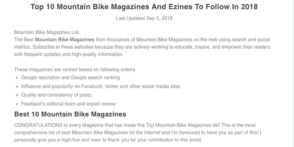 IMB in Feedspot Top 10 Mountain Bike Magazines