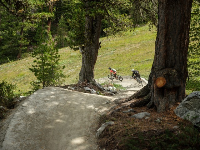 It took 23 construction workers from Werkhof Zermatt – one of the largest trail construction teams in Switzerland – one-and-a-half summer seasons to build the Sunnegga-Trail. This was preceded by an 18-month planning phase. The route starts on Sunnegga, 2288 metres above sea level, and finishes 500 metres lower down the mountain, just above Zermatt. “Building such a simple trail in such challenging terrain is a true Swiss innovation,” says Greiner. Depending on ability, it takes between 30 minutes and 1½ hours to cycle the whole trail. Some sections have been open since the beginning of the summer season.