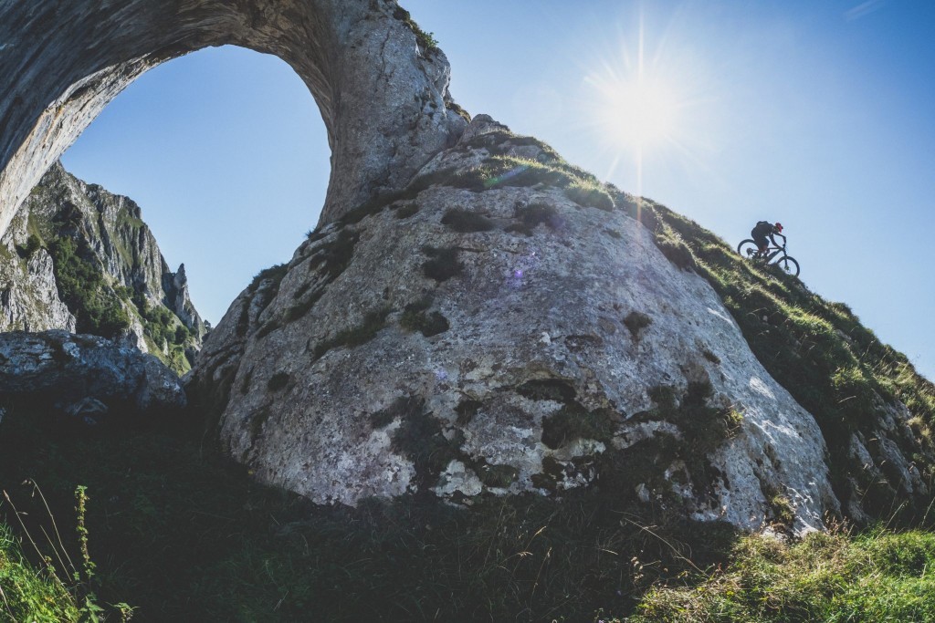 Some time ago I saw some photos of an impressive rock in the shape of an ox eye. It did not take long to locate the exact location, it was the climb to Peña Mea. A mountain located in the council of Aller, in the Principality of Asturias. His vision was striking, monumental. The truth is that my imagination was shot and I was already dreaming of walking over that spectacular porthole with my bike and then descend the whole mountain.