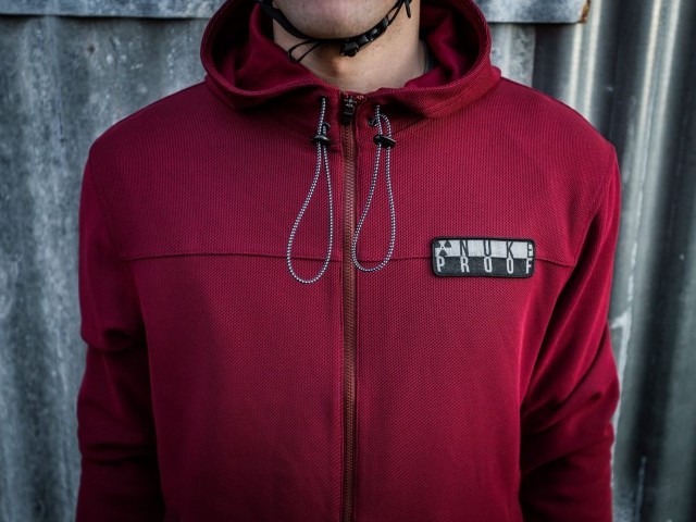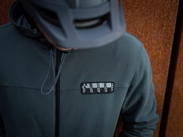 The Outland Tech zip hoodie 296gsm hoodie designed for on the bike. The hood is cut to fit over the helmet, with Cordura elbow patches to help prevent snagging when riding near trail brush.