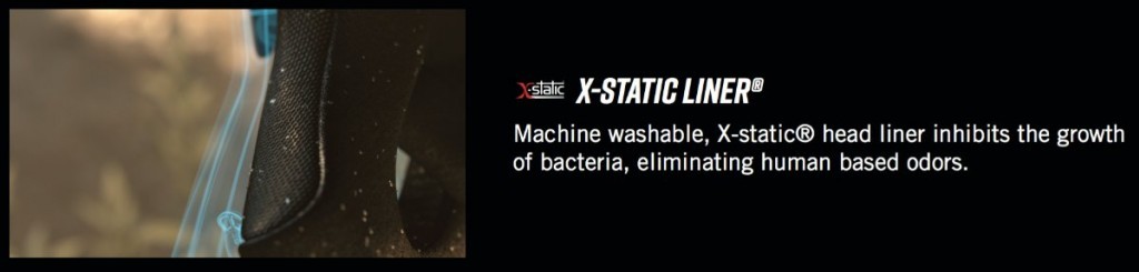 Removable, washable X-Static® comfort liner and cheek pads that are antimicrobial and manage odour while wicking moisture away from the head.