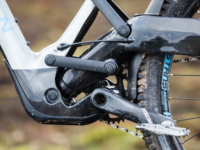 Ground tracing is a term that has come through from Darrell Voss, the man behind Naild, and it’s a good term. The Mount vision certainly hugs the ground and cornering traction is immense. Even in slick patches of mud, the back end is working hard to find traction and keep you on track. It’s a magic carpet ride experience and something that defines these bikes, couple that with the 2.6 tyres and the thing sticks like glue in the turns. The addition of a linkage to drive the shock is a real bonus and has stiffened up the back end and made the whole bike feel more stable and precise through corners. The rear axle is also new and this again keeps everything tight and stiff out back.
